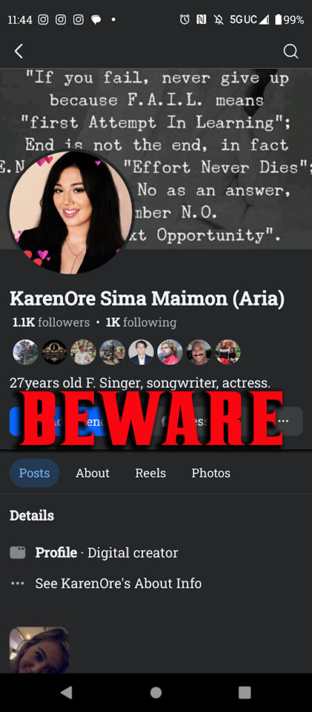 CLAIMS FAKE ACTRESS FAKE HORRORSCOPE FAKE SINGER..Goes through peoples luggage when they are asleep and will bring ALL DRAMA to your home.